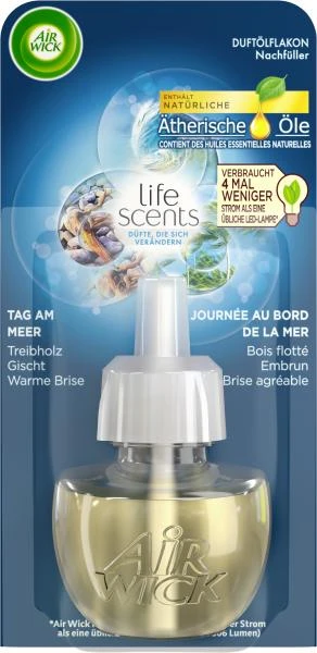 Nachfüllflakon für den elektrischen Duftstecker. Tag am Meer mit den sich verändernden Düften Treibholz, Gischt und Warme Briese.