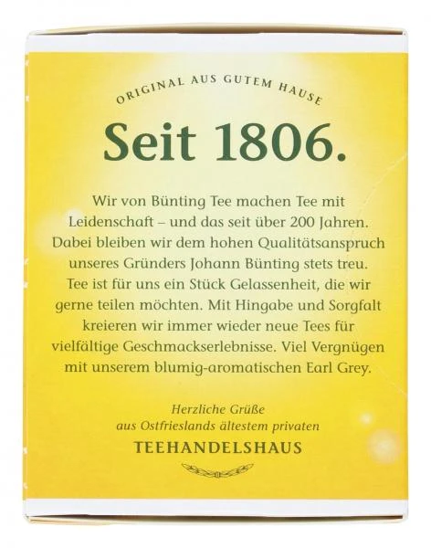 Eine Premium-Qualität aus feinen Tees bester Provenienzen aromatisiert mit dem Geschmack der Bergamotte. Diese klassische Tee-Spezialität mit blumig-delikatem Aroma ist nach dem ehemaligen britischen Premierminister Edward Grey, Earl of Fallondon, benannt.