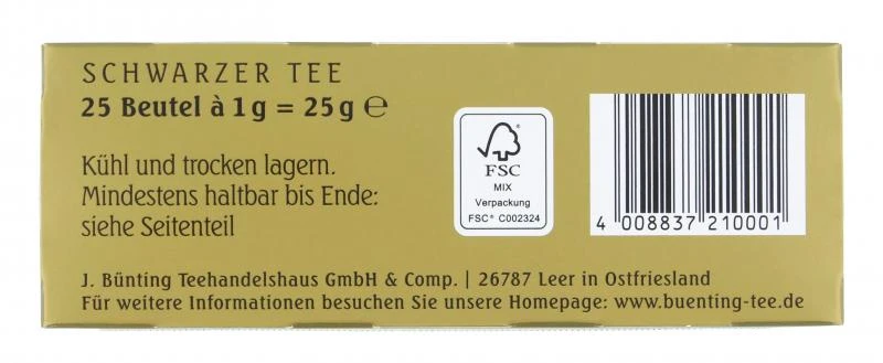 Echter Ostfriesentee – Original aus gutem Hause. Der Komposition edler Spitzen-Tees aus Assam und anderen berühmten Anbaugebieten verdankt dieser Tee seinen unverwechselbaren Charakter und seinen kräftig aromatischen Geschmack.