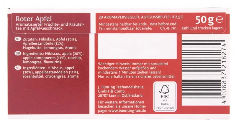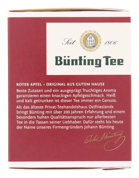 Beste Zutaten und ein ausgeprägt fruchtiger Apfelgeschmack garantieren einen knackigen Teegenuss. Heiß oder kalt getrunken – immer ein Genuss!