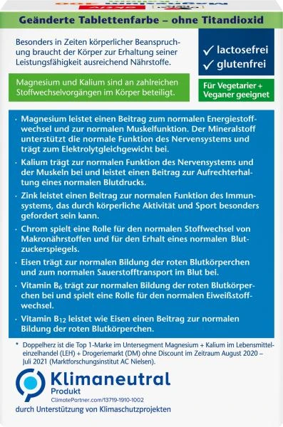 Magnesium als Beitrag für die Muskelfunktion und das ElektrolytgleichgewichtEine optimale Versorgung mit Mineralstoffen und Vitaminen ist eine wichtige Voraussetzung für Gesundheit und Leistungsfähigkeit. Besonders in Zeiten körperlicher Beanspruchung braucht der Körper zur Erhaltung seiner Leistungsfähigkeit ausreichend Nährstoffe. Magnesium und Kalium sind an zahlreichen Stoffwechselvorgängen im Körper beteiligt.