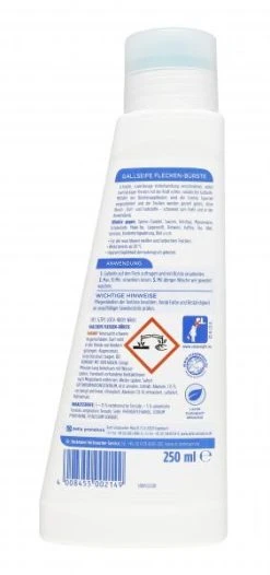 Dank weicher Spezial-Bürste werden selbst hartnäckige und eingetrocknete Flecken mit der Kraft der natürlichen Gallseife zuverlässig schon vor der Wäsche entfernt. Die neue Farbschutzformel sorgt zusätzlich dafür, dass die Textilien geschont werden und Farben nicht ausbleiche. Entfernt Flecken von: Fett, Öl, Schmiere, Make-Up, Blut, Obst, Gemüse, Ketchup, Kinderfertignahrung uvm.