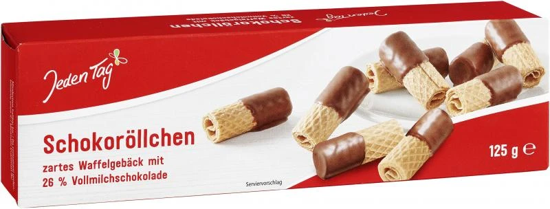 Zartes Waffelgebäck mit 26% Vollmilchschokolade.