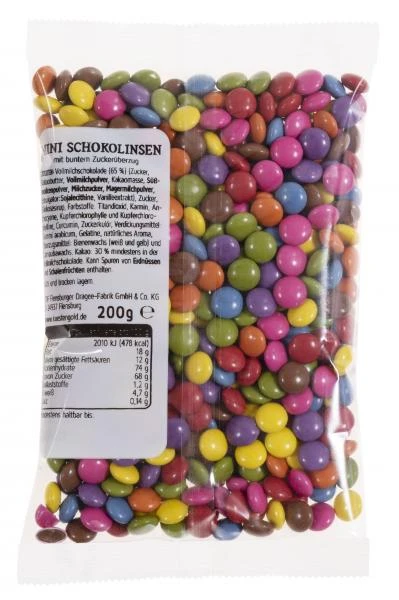 Mini Schokolinsen mit buntem Zuckerüberzug.