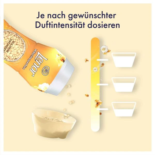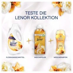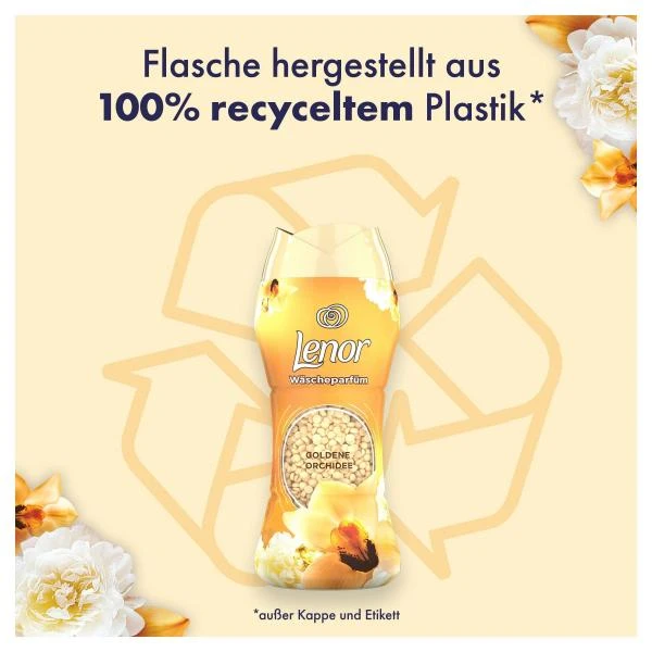 Entdecken Sie das Lenor Wäscheparfüm, die neueste Ergänzung der Wohlfühlreihe von Lenor für lang anhaltende Frische (bis zu 12 Wochen im Schrank). Genießen Sie den Duft von Lenor ? vom Waschen bis zum Anziehen. Lenor Goldene Orchidee verströmt einen verführerischen Hauch von Vanille, der die Sinne umschmeichelt. Gemischt mit Mimose, honigsüßen Rosenakzenten und cremigem Pfirsich sorgt Lenor Goldene Orchidee für eine unglaublich angenehme und sinnliche Erfahrung. Das Lenor Goldene Orchidee Wäscheparfüm wurde perfekt auf den Lenor Goldene Orchidee Weichspüler abgestimmt. Wunderbar alleine, zusammen ein himmlisches Wohlgefühl. Ich fühl mich wohl in Lenor.