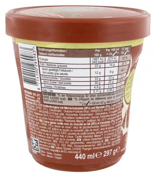MADE TO BE BROKEN – Drücken, knacken und genießen. Feine Vanilleeiscreme mit Milchschokoladenstücken, Mandelstiften und einer knackigen Milchschokoladenhülle.
