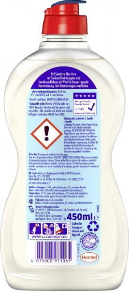 Das hautfreundliche Spülmittel von Pril. Sanft zur Haut und kraftvoll gegen Verschmutzungen.Pril Sensitive Aloe Vera bietet Ihnen eine unvergleichliche Milde. Die Formel mit schimmernder Seideneffekt-Rezeptur besitzt einen hautfreundlichen pH-Wert für hervorragende Hautschonung bei hoher Fettlösekraft. Von Dermatologen empfohlen.