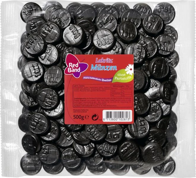 Die leckerste Währung aller Zeiten – dunkel, intensiv, einfach köstlich.Mit diesen Lakritz Münzen ist der Genuss garantiert. Nicht nur zum selber genießen, sondern auch als originelles, außerordentlich köstliches Extra zu Gutscheinen oder in Geburtstagskarten geschobenen Scheinchen, sind diese Münzen perfekt geeignet!Ihre original holländische Qualität ist nicht nur der Grund für die Guldenwerte, die ihre Oberfläche zieren, sondern auch für den intensiven Lakritzgeschmack und das Suchtpotenzial der Münzen!