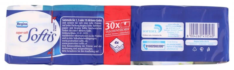 30 Päckchen Taschentücher. Hautfreundichkeit dermatologisch getestet.