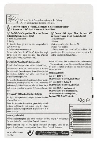 Der WC-Ente AquaBlue Einhänger färbt das Wasser mit jeder Spülung meeresblau! Die spezielle Form des WC-Ente AquaBluesorgt dafür, dass Ihr WC mit jeder Spülung gleichmäßig erfrischt wird.